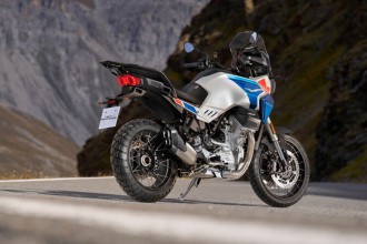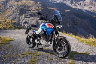 Nostalgie beim Namen, Hightech bei der Ausstattung der Moto Guzzi Stelvio Duecento Tributo